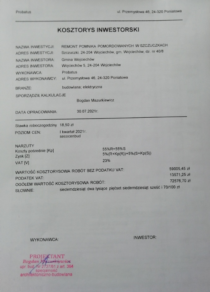 Zwracamy się z prośbą do wszystkich ludzi i firm o pomoc finansową. Nie pozwólmy zapomnieć o miejscu kaźni niewinnych ludzi. Pamiętajmy o eksterminacji Polaków, oni również ginęli w tej wojnie tylko dlatego że byli Polakami. Pomóżcie nam zapobiec dalszemu niszczeniu mogiły bestialsko zamordowanych i przywrócić godne miejsce ich wiecznego spoczynku.