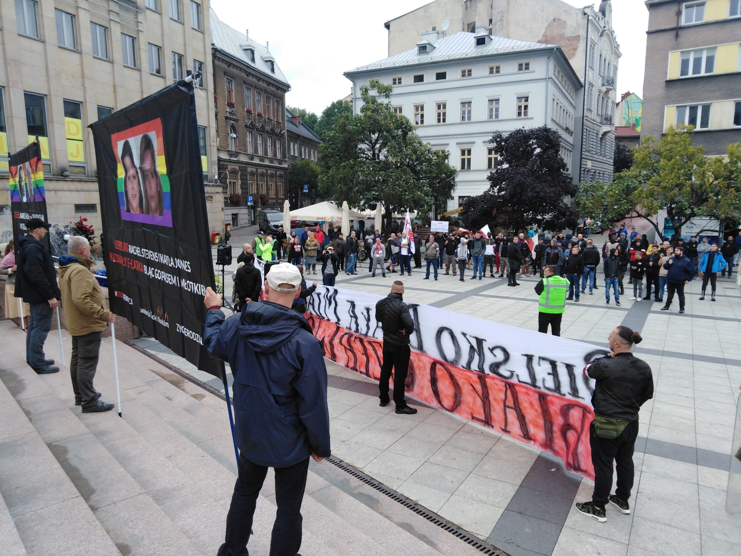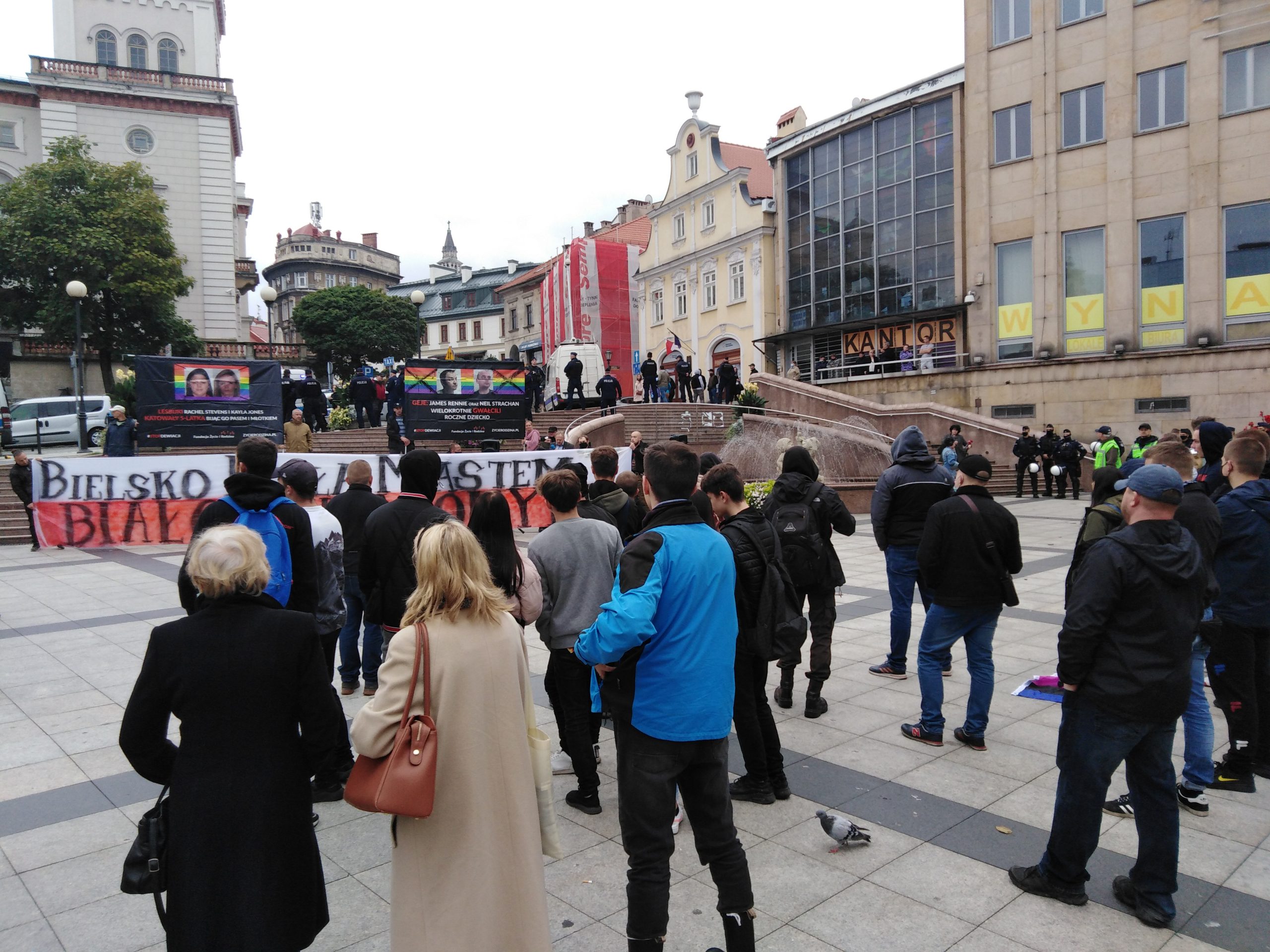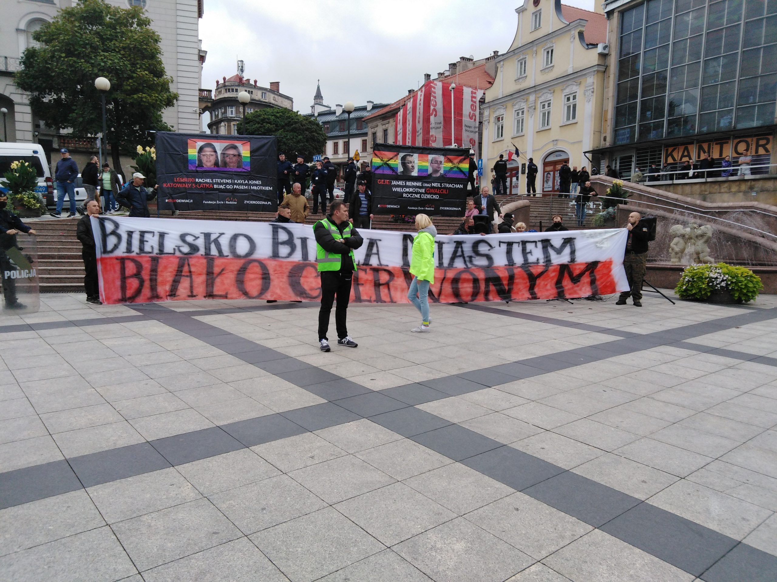 Jak zapowiadaliśmy, w minioną niedzielę wzięliśmy udział w kontrze do pierwszego w Bielsku-Białej korowodu lucyfera, zwanego „paradą równości” (a raczej nierówności pod sufitem). Co cieszy to mała frekwencja wśród kolorowych wesołków, kilkaset osób, jeszcze zwiezionych z całego kraju. Nie pomogła nawet obecność niedoszłej funkcjonariuszki ABW Marty „Wy……..ć” Lempart.