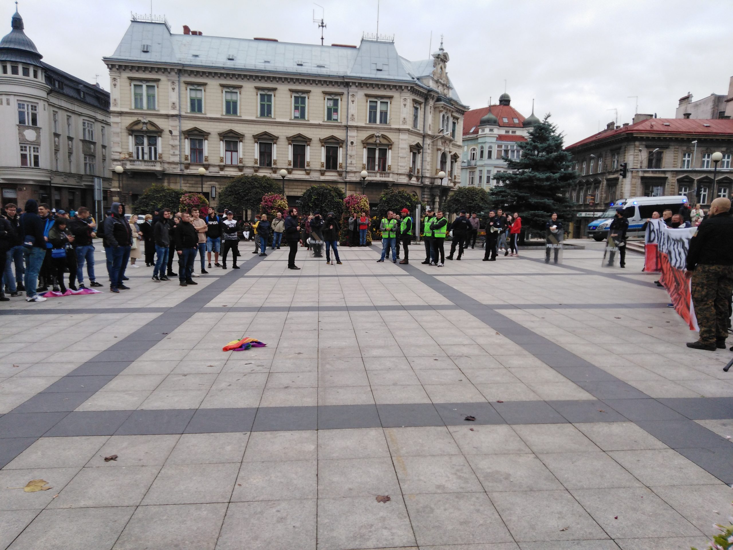 Rozpoczęliśmy gromadząc się o 13.00, i już na dzień dobry przywitał nas Zespół Anty-konfliktowy Komendy Wojewódzkiej Policji z Katowic. Oj trzęsły się galoty cóż to znów ci „faszyści” i foliarze mogą zrobić. Przyznać jednak trzeba że ogólnie policja zachowała się w porządku, nie było żadnych prowokacji z ich strony i dało się wyczuć że nas w tej kwestii popierają.
