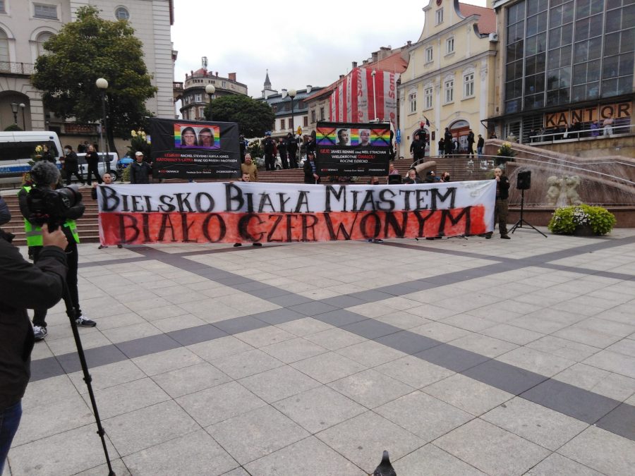 Szkoda dwóch rzeczy. Po pierwsze że było nas tylko ok 150 osób a nie 150 tysięcy. Wtedy sześciokolorowe barachło nie zrobiłoby nawet kroku po bielskich ulicach, tylko musiałoby razem z lamparcicą wy…..ć. Po drugie, nawet ważniejsze, nie było z nami ani jednego księdza, a powinni być wszyscy z okolicy. Cóż, wolą udawać że to nie ich sprawa, że tolerancja, miłosierdzie, że do polityki się nie mieszają itd. Lepiej zrobić punkt szczepień przy parafii. O tym jednak wkrótce, bo już kilka akcji pod parafiami zrobiliśmy i niestety widać że to jeszcze nie koniec.