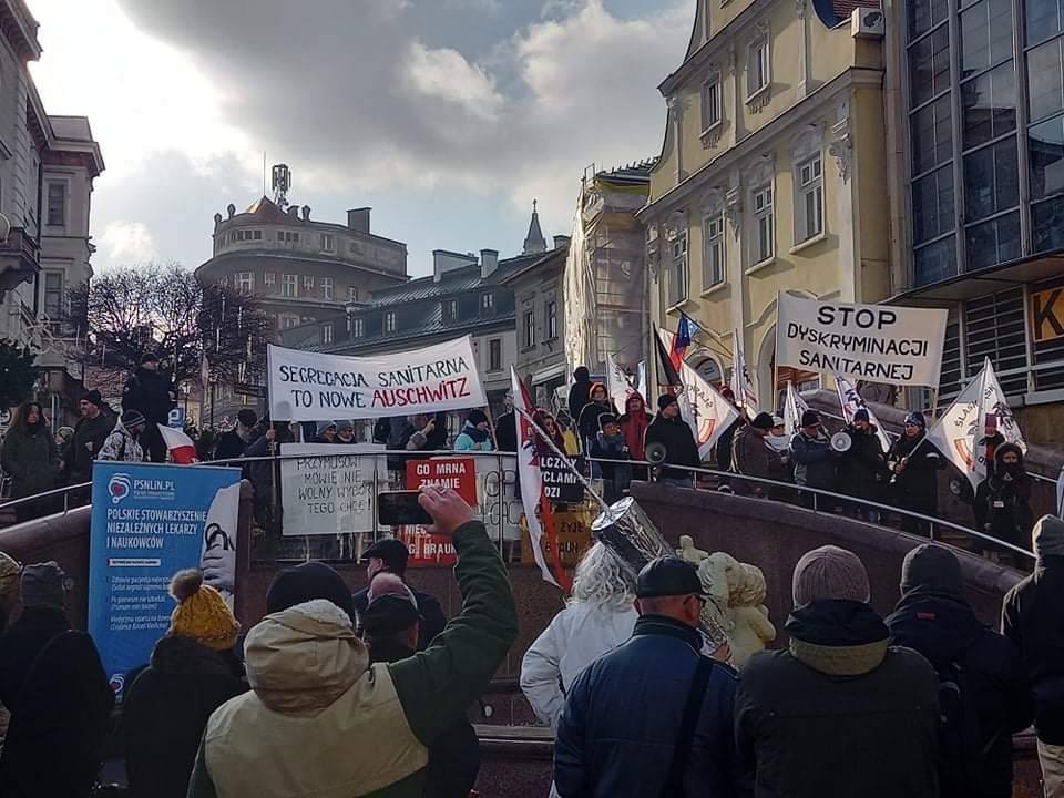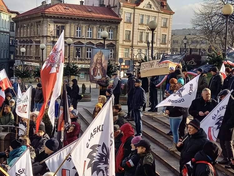 W dniu 15.01.2022 w Bielsku-Białej o godzinie 12.00 odbył się protest przeciwko Segregacji Sanitarnej. Zgromadzeni ludzie wyrażali swój sprzeciw skandując i wygłaszając liczne przemówienia, wśród nich nie zabrakło również głosu Lekarza Doktor Katarzyny Bross-Walderdorff, która nie kryjąc zgorszenia zaistniałą sytuacją w Polsce i na świecie przedstawiła zgromadzonym liczne dowody na szkodliwy wpływ preparatów inżynierii genetycznej na ludzki organizm oraz jego długofalowe skutki uboczne. Dowiedzieliśmy się również ,że te preparaty zwane szczepionkami są w fazie badań klinicznych przynajmniej do grudnia 2023 roku o czym mówią producenci, można to sprawdzić w ChPL (charakterystyka produktu leczniczego) danego preparatu, oraz uzyskać wiele informacji na stronie PSNLiN- Polskie Stowarzyszenie Niezależnych Lekarzy i Naukowców. Przemawiający opowiadali również w jaki sposób są traktowani w pracy a w szkołach ich dzieci. W rozmowach z osobami, które przybyły na protest można było usłyszeć o ludzkich dramatach, które nastąpiły po szczepieniu i rozgrywają się na co dzień poza ,,światem mainstreamowych mediów”, oraz ogromnej segregacji ludzi na zaszczepionych i nie zaszczepionych, ,,na lepszych i gorszych”.