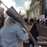 Nie trzeba daleko sięgać pamięcią by przypomnieć sobie czasy w których od segregacji ludzi wszystko się zaczęło, trudno nie zgodzić się z protestującymi, że każdy człowiek ma prawo do ludzkiej godności i suwerenności a co za tym idzie do Wolności. Na koniec przemówień z podsumowaniem wystąpiła z naszej Fundacji Pani Stanisława Tomczyk, która przypomniała wszystkim o tym , że Wolność i Godność człowieka jest nam dana od Boga i że Nasza Walka o Wolną Polskę powinna być poparta modlitwą i różańcem.