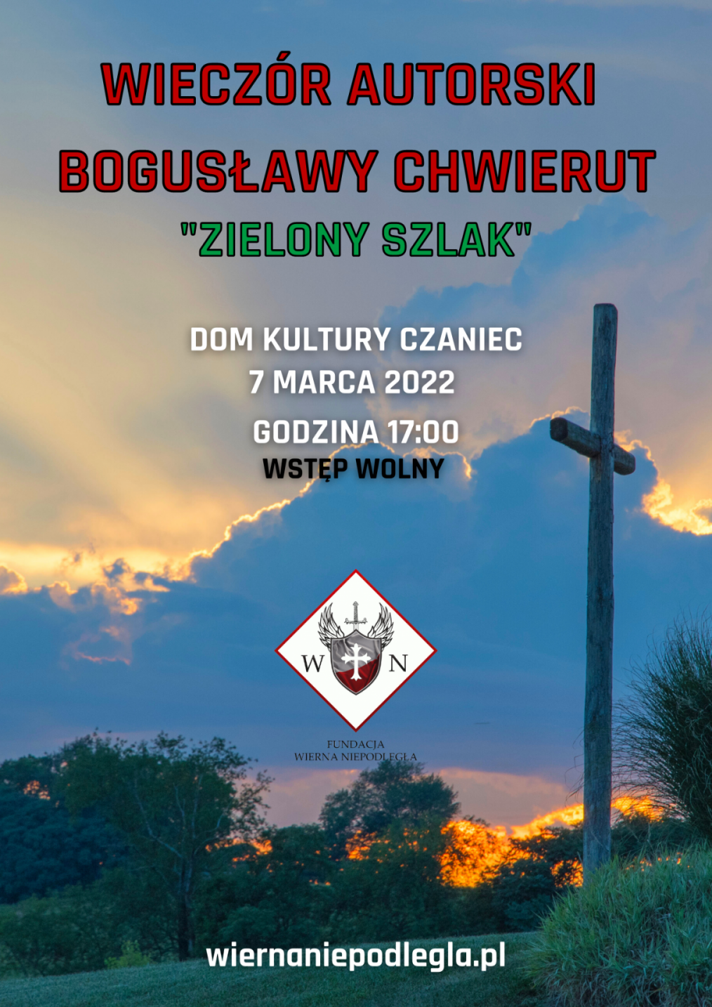 Zapraszamy na wieczór autorski Bogusławy Chwierut, który odbędzie się w poniedziałek 7 marca 2022r. o godzinie 17.00 w Domu Kultury w Czańcu. Bogusława Chwierut. Poetka urodzona w Czańcu 1960r. Od 1990 roku libiążanka pisząca z potrzeby serca, dla wszystkich kochających poezję. Niezłomna